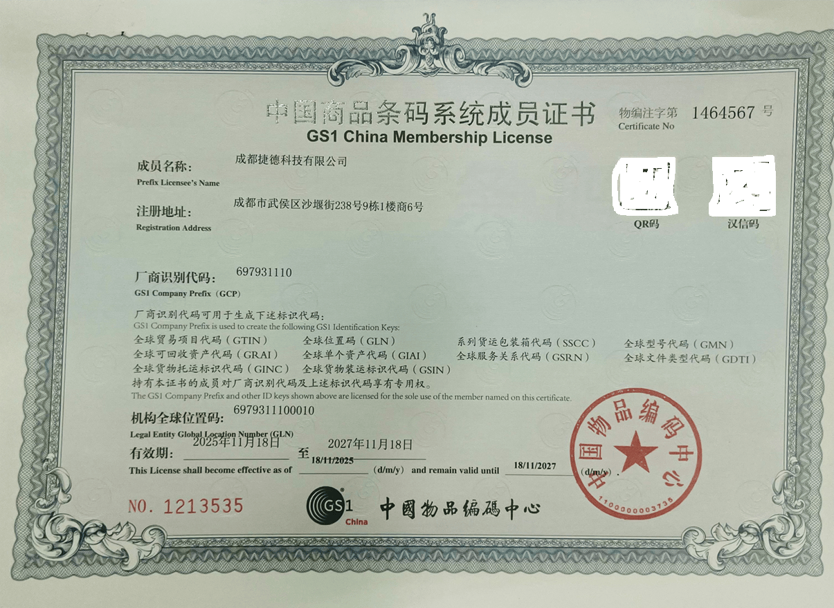 近日,成都捷德科技无限公司正式斩获《中国商品条码系统证书》,这张 “市场通行证” 的背后,是企业十余年深耕智能餐饮设备范畴的手艺积淀,更预示着其正在千亿级食堂数智化市场中即将的全新增加空间。此次认证不只是对其产物合规性的权势巨子背书,更是对其行业领先手艺实力的无力印证。