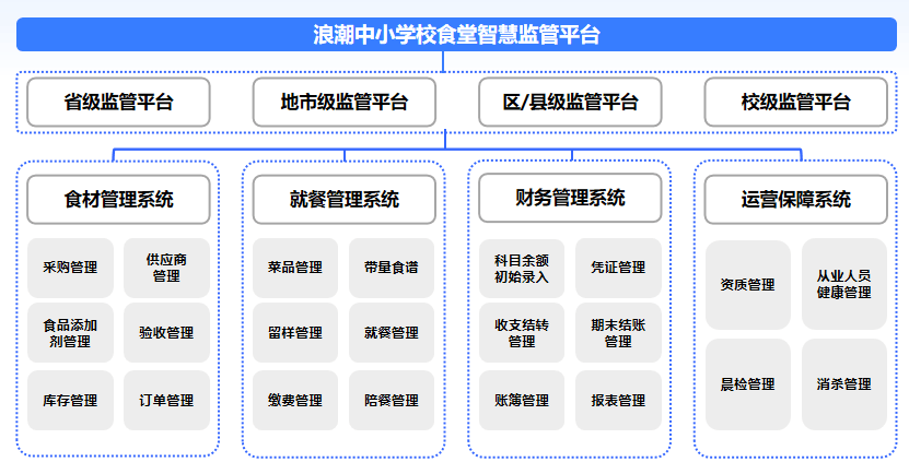 当前,中小学校园食堂正在食物平安取经费规范办理方面的问题日益凸显,经多次后,已激发社会对学生饮食平安、炊事经费规范利用、通明收入及资金平安的深切担心。正在此布景下,出台《中小学校食堂聪慧办理系统扶植指南》,以政策之力鞭策数字化监管全笼盖。海潮易云积极响应政策号召,依托1+4聪慧监管平台,以手艺破题,为校园餐管理供给全流程、可逃溯的智能处理方案。保守办理模式下,校园餐管理仍面对诸多灾题:食材溯源难、经费监管乱、食安过程不成控、多方协同弱等。这些痛点倒逼校园餐办理必需辞别“人工记账、纸质留痕”的保守模式,更通明、更智能的聪慧化办理。国度已将校园食物平安纳入沉点管理范围,处所层面也敏捷跟进,2025年9月9日印发《中小学校食堂聪慧办理系统扶植指南》,要求2026年笼盖全省80%以上学校食堂,建立省、市、县、校四级联动中小学校食堂聪慧办理系统。从国度四处所,政策层层递进,都指向统一个标的目的:以数字化、智能化手段实现校园餐全流程监管,让“食材可溯、过程可视、数据互联、风险可控”成为常态。为响应国度关于加强校园食物平安的号召,海潮易云自动担任,推出海潮中小学校食堂聪慧监管平台。该平台基于“1个焦点平台+4大营业系统”的一体化架构,努力于实现从采购到供餐的全链条闭环监管,旨正在建牢平安防地、消弭办理缝隙,以数字化手段沉塑校园食堂办理模式。
